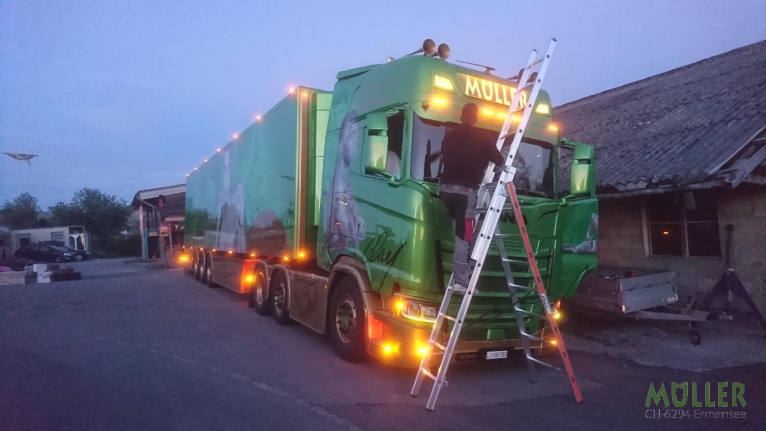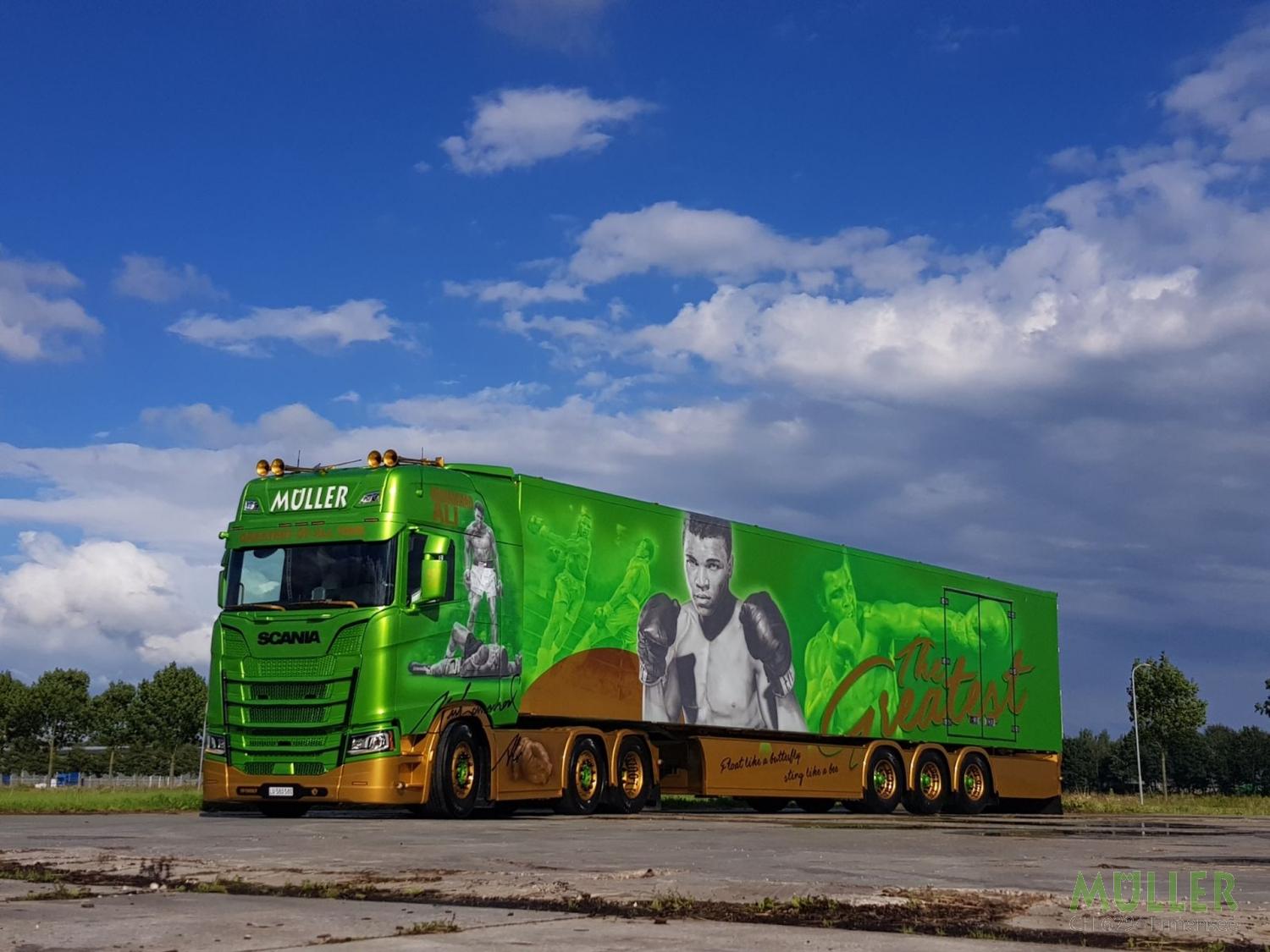 Scania S580 Muhammad Ali Jg. 2017 / Euro 6 Kühlauflieger VéDéCar IH 2.65m Seitentüre